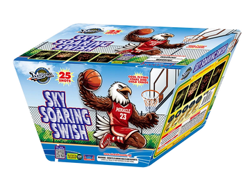 Crowd favorite with incredible 4 layers of performance! Red/green strobe+silver fish+blue mine up to silver chaos with red/blue/orange/green/purple/yellow/crackling. Visual delight!