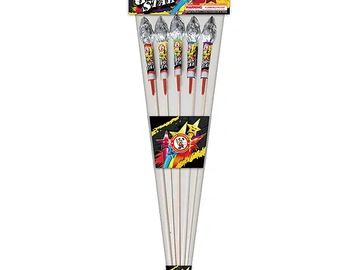 Our premium big rocket assortment for your 4th of July. It consists of 5 different types of nice rockets with 31 assorted pcs. All in one premium rocket pack.